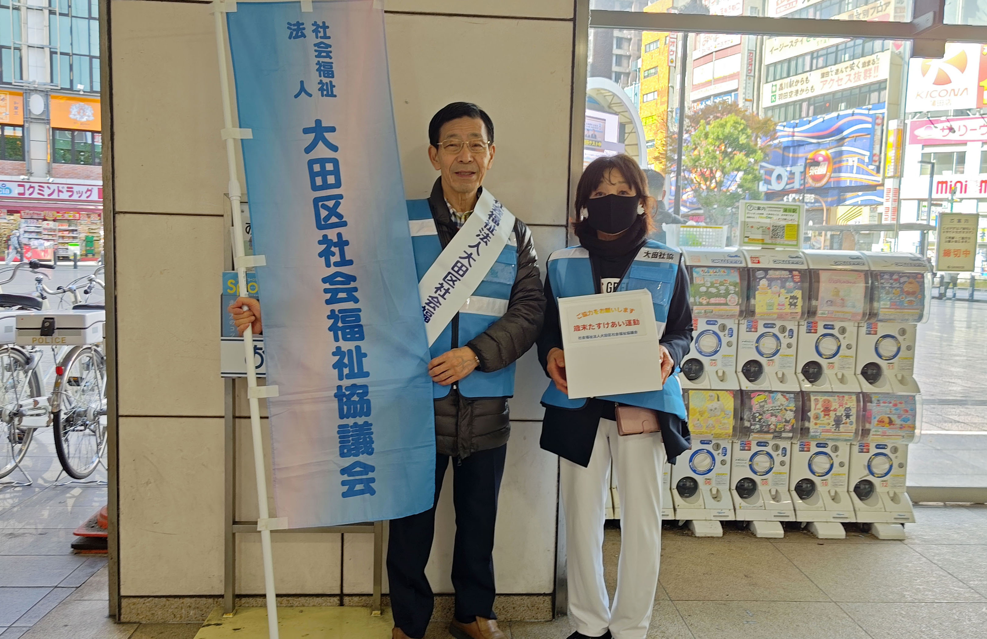 大田区社会協議会が毎年実施している街頭募金活動に、当会のメンバーが参加協力しました。