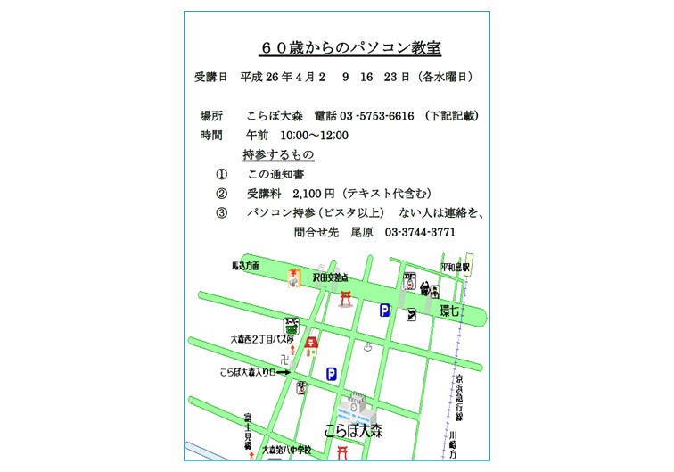 | 2014年 | 会場を消費者生活センターに移し、毎週水曜日の午前中に定期的なパソコン教室の開催を開始しました。 |